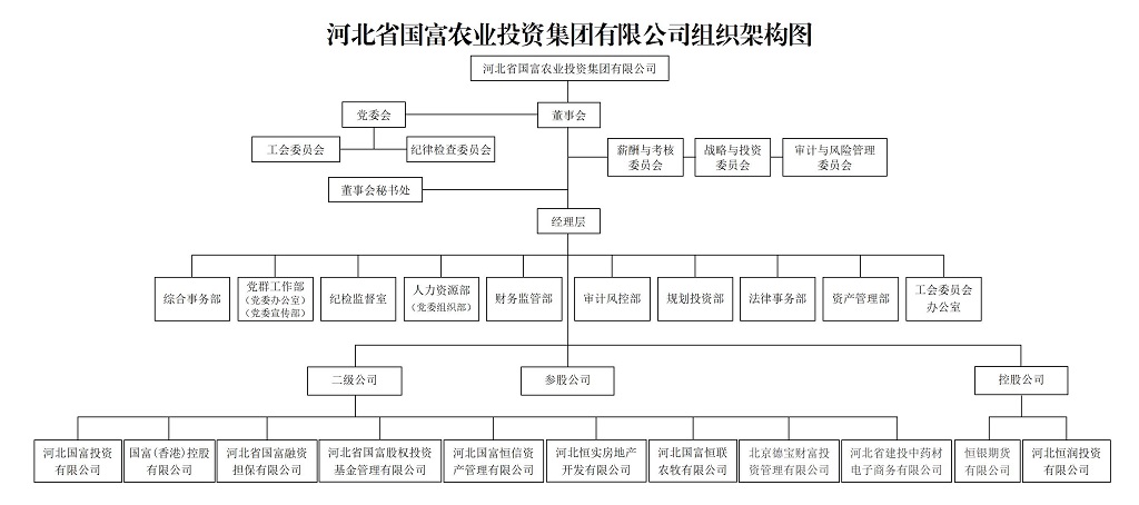 河北省國富農(nóng)業(yè)投資集團有限公司成立于1992年,前身為河北省經(jīng)濟開發(fā)投資公司。2001年11月,經(jīng)河北省人民政府批準,重組設(shè)立為河北省國富農(nóng)業(yè)投資集團有限公司,注冊資本3.34億元。2017年3月,按照省政府安排全面劃轉(zhuǎn)至省國資委管理,是河北省國資委授權(quán)的競爭類國有資產(chǎn)授權(quán)經(jīng)營機構(gòu)。2024年7月,經(jīng)省委、省政府同意,省國資委決定將河北國富投資劃轉(zhuǎn)至河北建投集團管理。