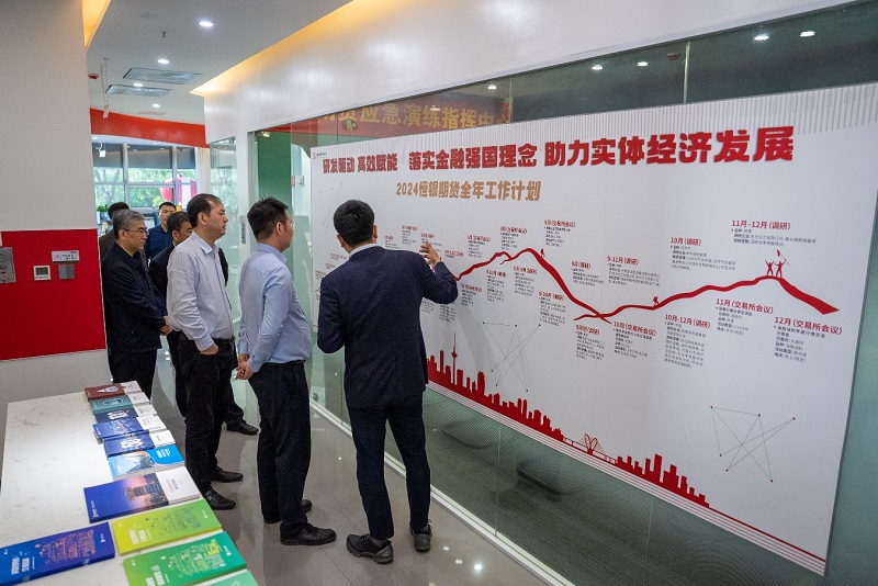 4月17日下午,河北省國資委黨委委員、副主任徐科華到國富投資集團所屬恒銀期貨有限公司調研指導工作,了解了恒銀公司的整體情況,參觀了恒銀公司的直播間、信息技術部、黨建長廊、期貨投教基地等部門,重點了解了雞蛋、生豬等與國計民生息息相關的期貨產(chǎn)品的區(qū)間走勢,并對期貨交割庫在河北省的具體分布和發(fā)揮的作用等情況進行了深入交流溝通。