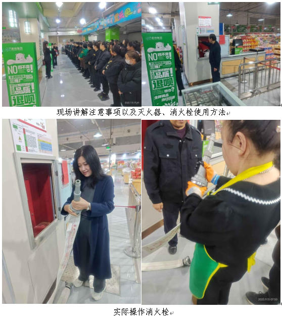 本次演練模擬了真實(shí)火情場(chǎng)景,設(shè)置了三個(gè)核心科目,一是應(yīng)急疏散演練,工作人員協(xié)同顧客在疏導(dǎo)組的指揮下,沿指定疏散路線有序迅速撤離至安全地帶。二是模擬超市內(nèi)發(fā)生電氣火災(zāi),觸發(fā)警報(bào),滅火組對(duì)模擬火情采取滅火器和消火栓水帶水槍滅火。三是滅火器實(shí)操滅火,在指定安全區(qū)域,使用柴油設(shè)置了模擬火點(diǎn)。演練人員分組輪換體驗(yàn)并使用干粉、水基、二氧化碳等不同類型的滅火器對(duì)著火油盆進(jìn)行撲救。通過實(shí)操,大家掌握了“提、拔、握、壓”的動(dòng)作要領(lǐng),增強(qiáng)了操作記憶,熟悉了不同火情與不同滅火器具的使用和防護(hù)方法。