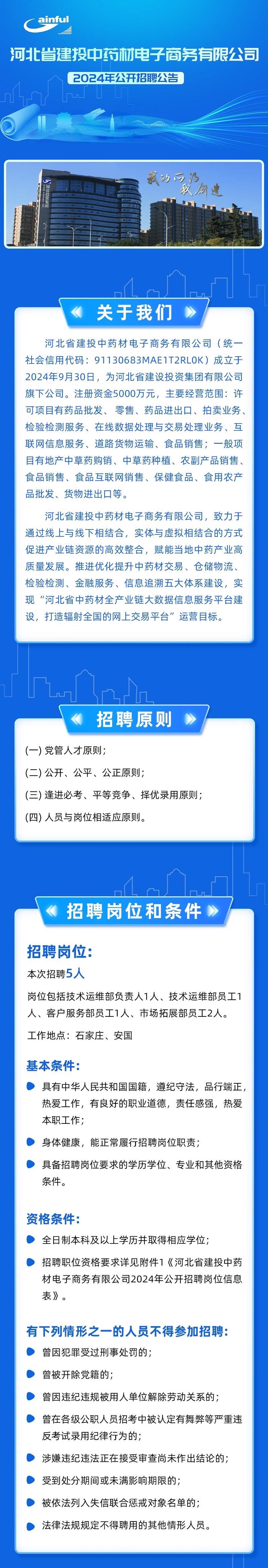 河北省建投中藥材電子商務(wù)有限公司2024年公開(kāi)招聘公告